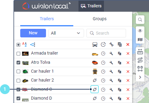 To separate the trailer from the unit, point to the unit icon in the trailer row and click on the icon