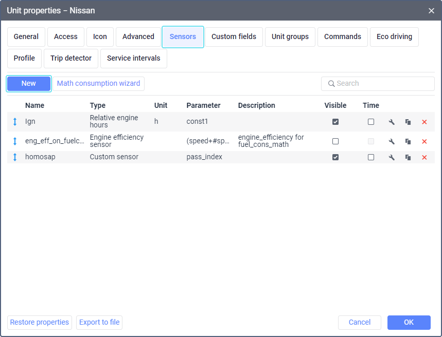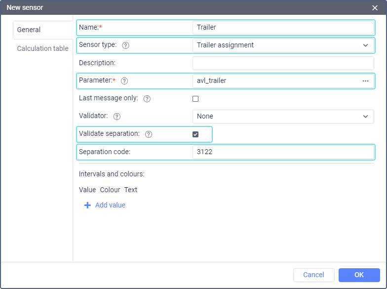 - For all the units, to which you want trailers to be assigned automatically, create a sensor of the Trailer assignment type. You can create it in the same way as a sensor of the Driver assignment type.