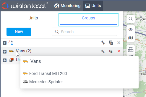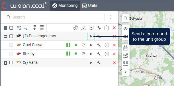 If you select a group in the list, the location of all its units which are online is displayed on the map.