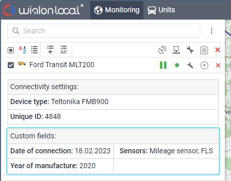 - in the user settings, enable the Custom fields option which allows you to display all the created custom fields and their values in the unit tooltip and in the extended unit information on the Monitoring tab;