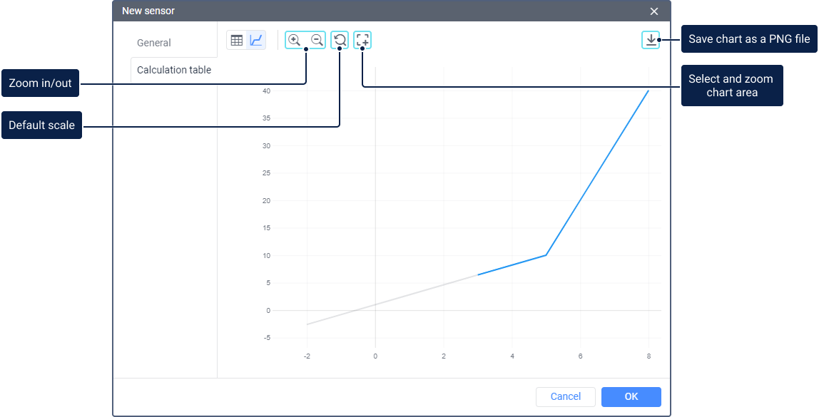 See the examples of configuring the calculation table for sensors of different types in the guide.
