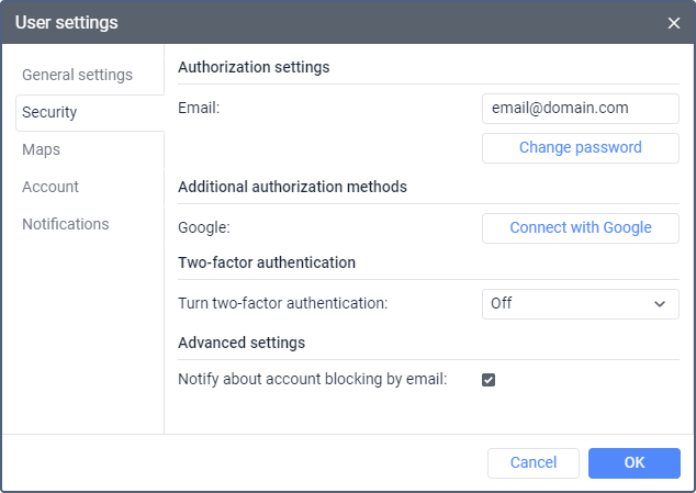 Upon request, you can configure authorization via third-party services based on Auth0. To get more information and send a request, contact support@wialon.com.