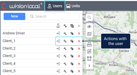 To add a new user, click on the New button and follow steps 2–6 of the guide from the Creating users section.