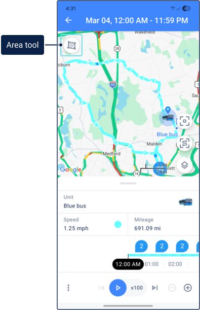 To see information about the event and move the unit icon to its location, tap the event marker on the timeline.