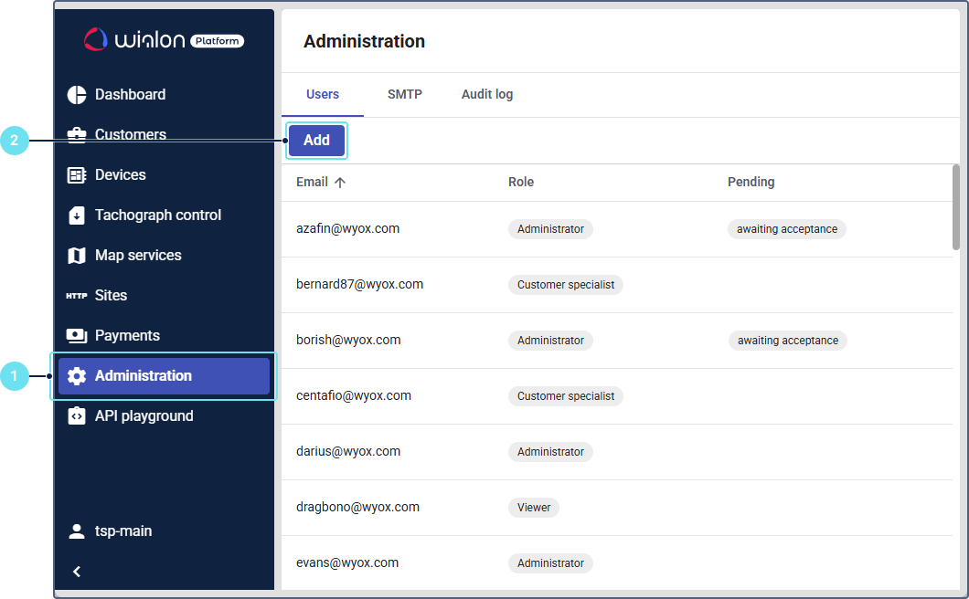 As a service provider, you can invite other users with specific roles to Wialon Platform. These roles may include administrator, operations manager, customer specialist, or viewer. Depending on their role, users have different levels of access to features and information within Wialon Platform.