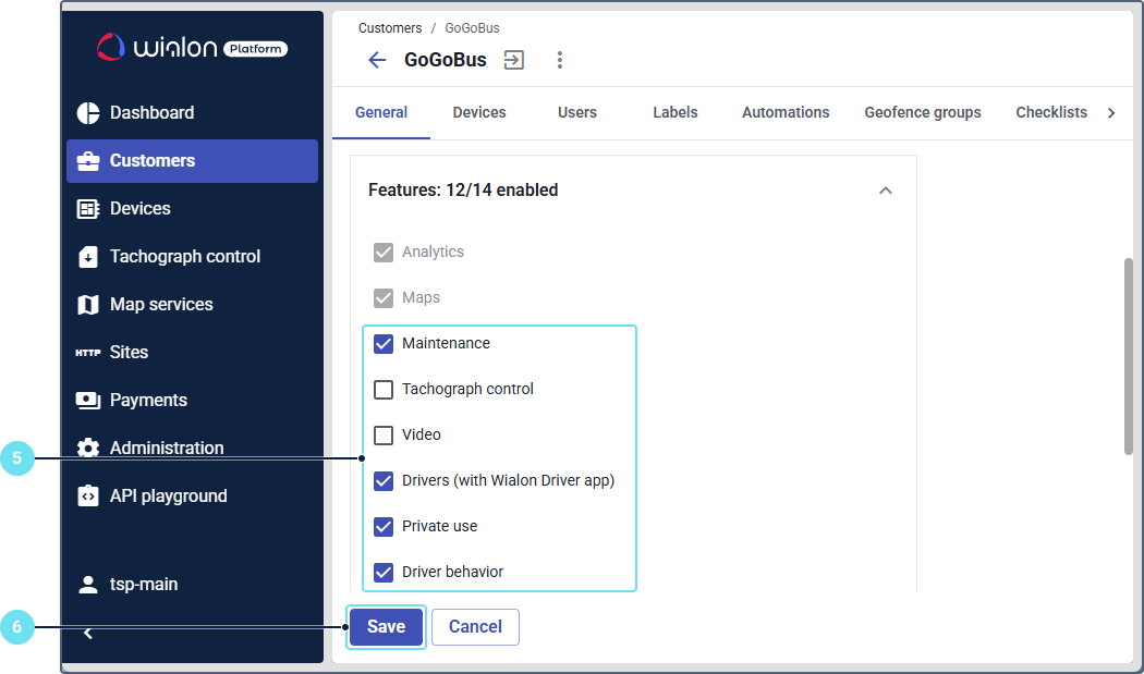 - In Wialon Platform Studio, open the Customers page.
