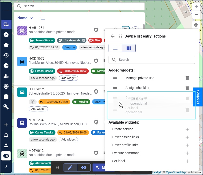 Widgets enhance the device list by providing quick-access actions or displaying real-time data directly on the device row. In the device list, you can add chips and widgets.