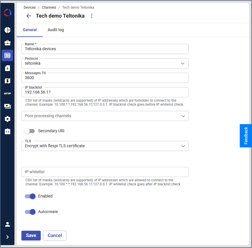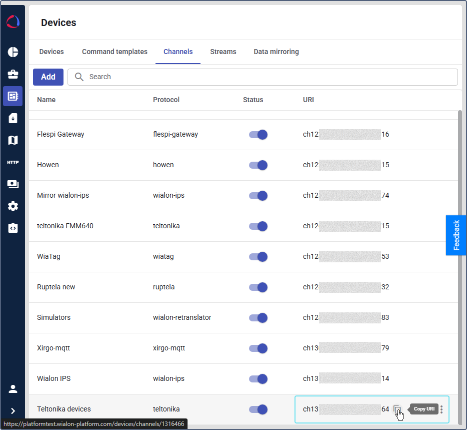 In this guide, we will connect Teltonika devices to Wialon Platform using the corresponding channel. To create a Teltonika channel: