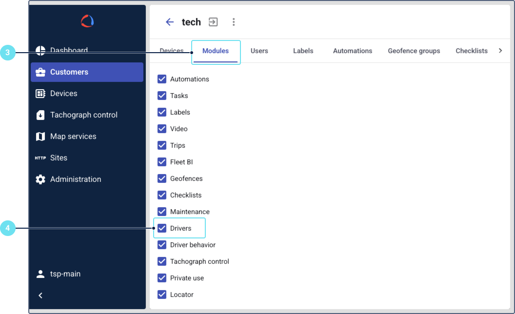 To use the Drivers module, a service provider must enable it for a customer account in Wialon Platform Studio.