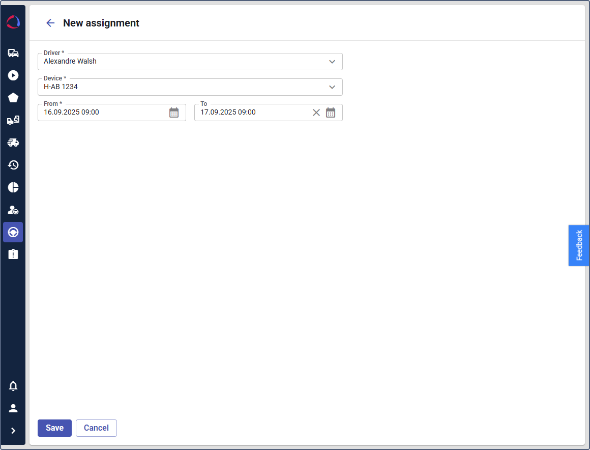 Driver assignments link a driver to a specific device for a defined period. Wialon Platform supports manual assignment methods, including real-time, retrospective, and scheduled assignments.