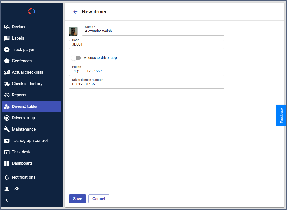- In Wialon Platform FleetSpace, navigate to the Driver management section.