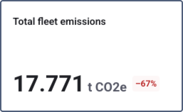 Total fleet emissions (value card): Displays the total CO2e emissions for the fleet over the chosen time period. If necessary, use the Show difference between previous periods toggle to display a comparison with the previous period as a percentage. This provides a key performance indicator for compliance reporting and tracking the overall environmental impact of the fleet.