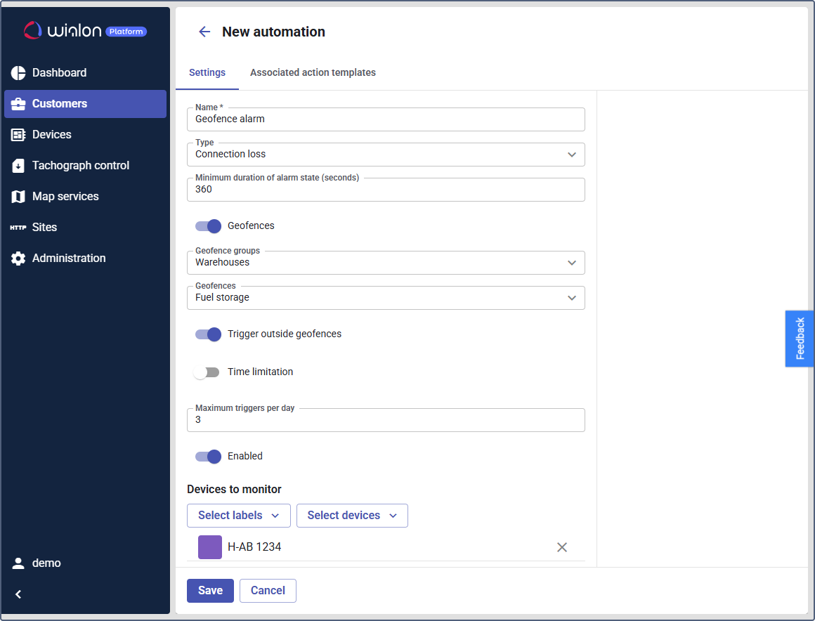 Geofences can be incorporated into the Logical expression and Connection loss automations to define conditions for triggering actions.