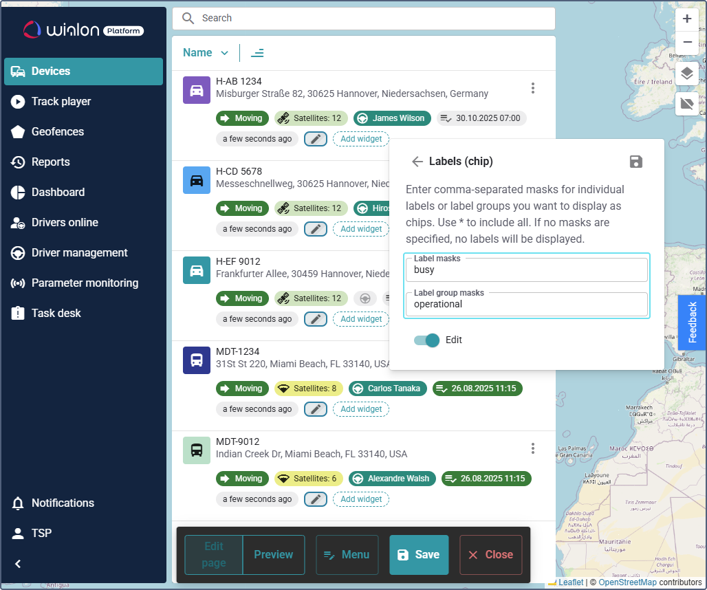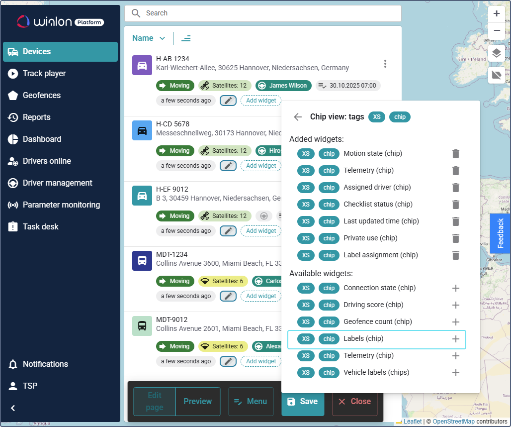 You have now successfully added the label chip, allowing you to monitor vehicle statuses in the device list.