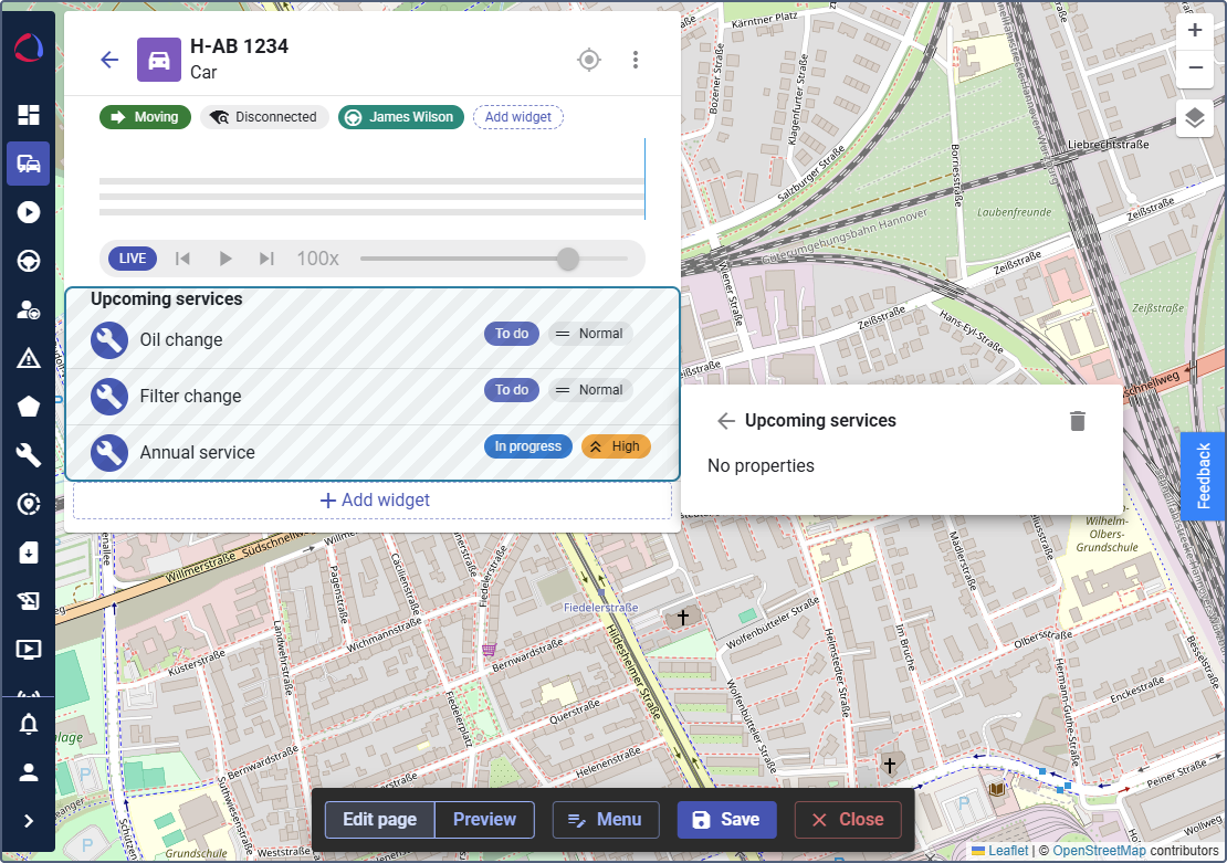 To see a list of maintenance tasks directly on a specific device’s page, you can add the Upcoming services widget. To do this: