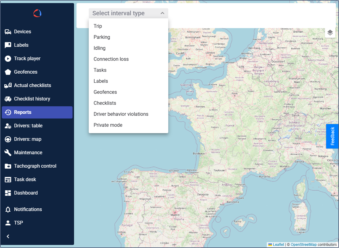 The Reports module allows you to analyze the activity of your vehicles and drivers.