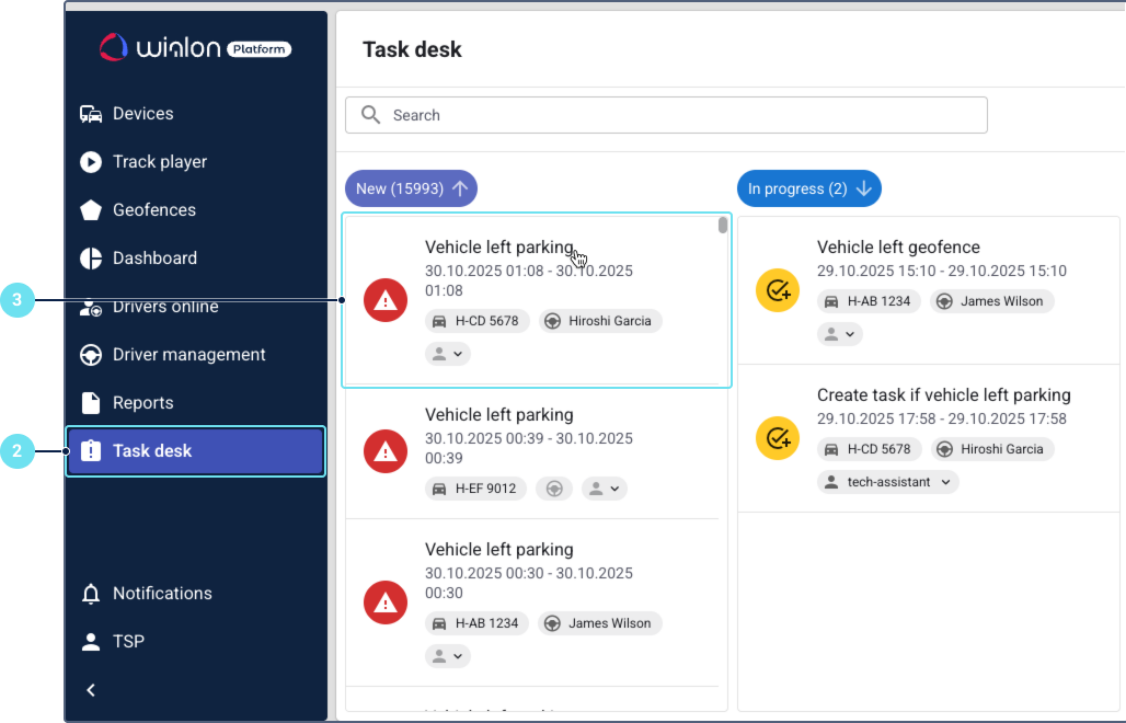 - Assigned driver: Displays the name of the driver currently assigned to a vehicle.