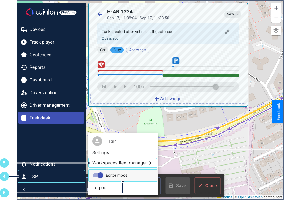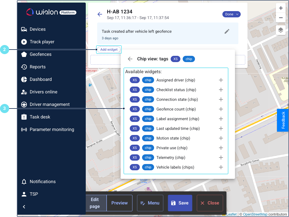 - Label assignment: Adds an icon to assign and unassign labels to the vehicle.