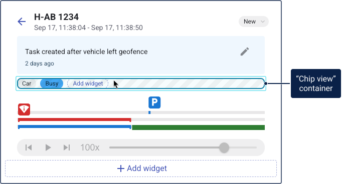- Labels: Displays labels assigned to a vehicle. See Adding the “Labels” chip section for details.