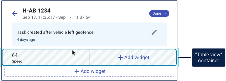 - Under the notes area, check if a Table view container already exists. If it doesn’t exist, click Add widget and select Table view. Then, click the icon