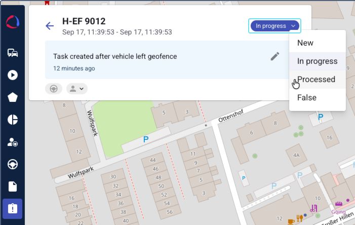 To view details about the device related to the task and see the task event on the map, click on the task section itself. The content of the task details is configured by the service provider.