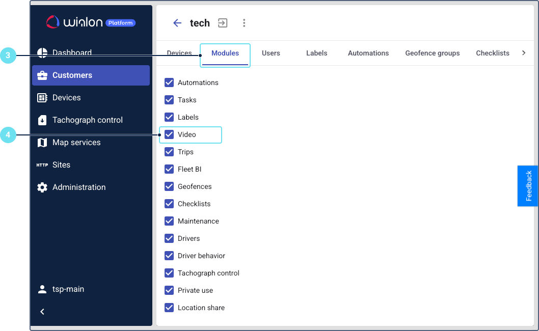 Once the Video module is active, you can add and configure the following features in Wialon Platform FleetSpace: