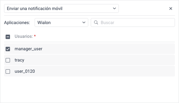 - Asegúrese de que los usuarios que deben recibir notificaciones estén autorizados en la aplicación móvil y tengan habilitada la opción que les permite recibir notificaciones. En el caso de la aplicación móvil Wialon, la opción Notificaciones push debe estar habilitada en la configuración.