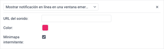 Si la opción Reproducir sonido para eventos está habilitada en la configuración de usuario, las notificaciones van acompañadas de una señal de audio. En el campo URL del sonido, puede especificar un enlace directo al archivo de sonido, que debe terminar con .mp3, .wav o .ogg según el formato del archivo. El tamaño de archivo recomendado es de hasta 0,5 MB. Si el campo no se completa, se utiliza la señal de audio predeterminada.