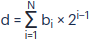 d = bN × 2N−1 + … + bi × 2i−1 + … + b2 × 22−1 + b1 × 21−1