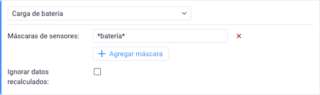 En la opción Máscaras de sensores, puede especificar una o varias máscaras de los sensores que deben utilizarse para detectar las cargas de batería y su volumen. Puede hacer clic en Agregar máscara para incluir varias máscaras de sensores.