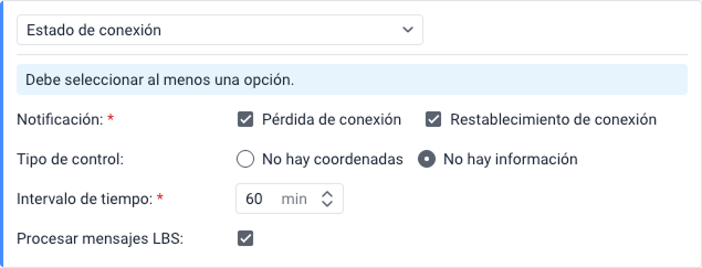 Seleccione Procesar mensajes LBS para asegurar el monitoreo en áreas sin cobertura GPS.