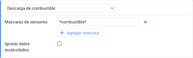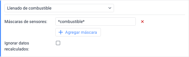 Con esta condición, puede supervisar parámetros específicos del sensor en mensajes. Permite controlar los parámetros enviados por el dispositivo y no incluye el control de parámetros virtuales (sats, speed, lat, etc.).