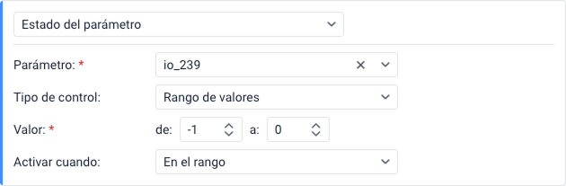Esta condición se activa cuando el sistema recibe un mensaje de alarma (SOS) de la unidad. Para ello, el dispositivo debe admitir la función de envío de dichos mensajes o se debe configurar un sensor del tipo Activación de alarma en las propiedades de la unidad.