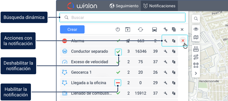 Indica si la notificación está habilitada o deshabilitada . Al hacer clic en él se alterna el estado. |