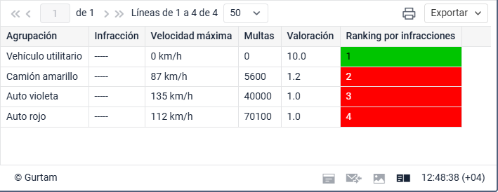 - En los ajustes de la tabla, seleccione ordenar por Ranking por infracciones en el parámetro de agrupación Total.