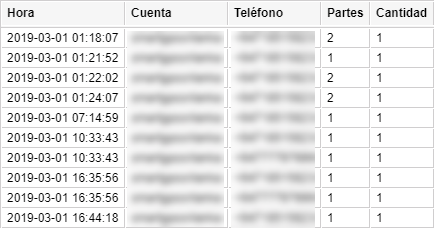 | Cantidad | La cantidad de mensajes SMS enviados. |