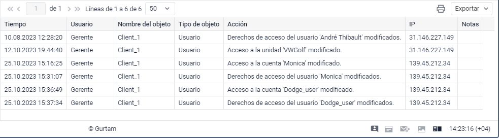 | IP | Dirección del ordenador (dispositivo) desde que el usuario ha realizado cambios o ha sido ejecutada la tarea o notificación configurada por el usuario. |
