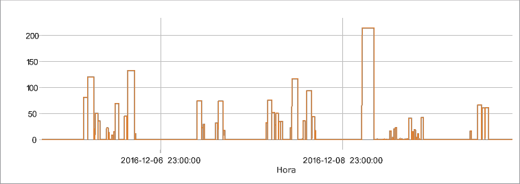 Los valores del sensor pueden visualizarse en una gráfica, que muestra los intervalos de actividad del sensor y sus valores. Véase más sobre las gráficas.