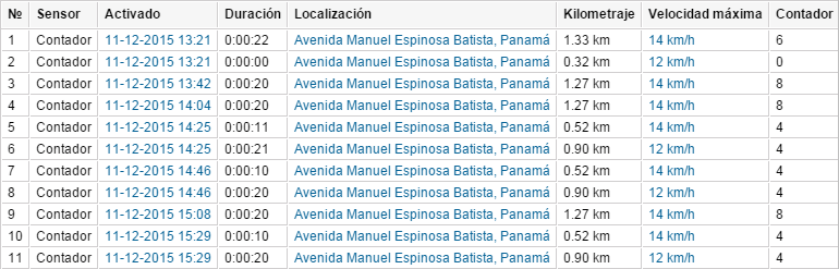 | Kilometraje | El kilometraje por el intervalo temporal de trabajo. |