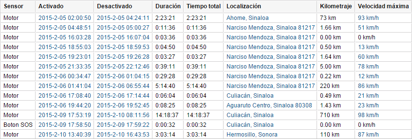 | Kilometraje | El kilometraje pasado con el sensor activado. |