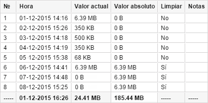 | Valor absoluto | El valor sumario del contador del tráfico GPRS en aquel momento. |