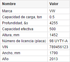 Este informe está representado por los datos introducidos en la pestaña correspondiente de las propiedades de unidad.
