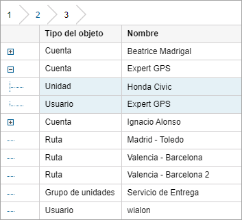 | Tipo de objeto | Cuentas, recursos, usuarios, unidades, grupos de unidades, repetidores, rutas. |