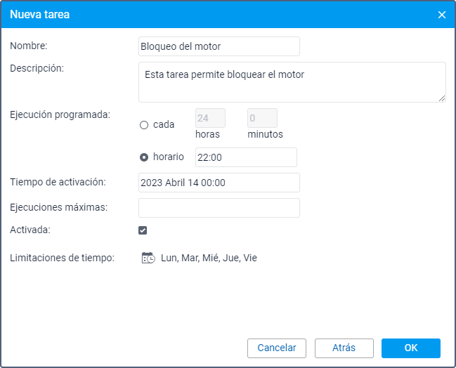 Configure los parámetros de ejecución de la tarea.
