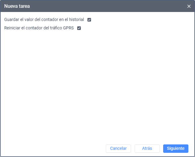 | Reiniciar el contador del tráfico GPRS | La opción permite reinicar el valor del contador, es decir, establecer el valor 0. |