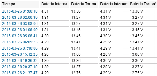 Esta tabla muestra los valores de un sensor en los momentos determinados. Una vez exportada a MS Excel, esto permite crear gráficas a base de los datos obtenidos.