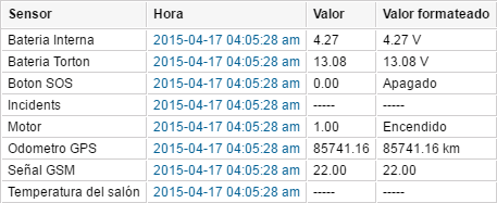 | Valor formateado | El valor considerando las unidades de medidas indicadas o el valor del sensor textual. |