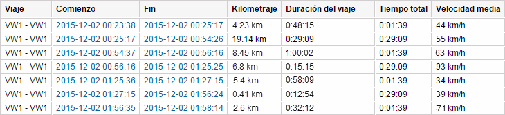 | Velocidad media | La velocidad media del movimiento de la unidad durante el viaje. |