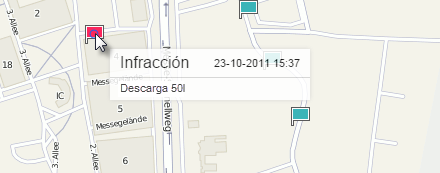 Adicionalmente, los lugares de eventos/infracciones pueden mostrarse en el mapa por medio de marcadores especiales.