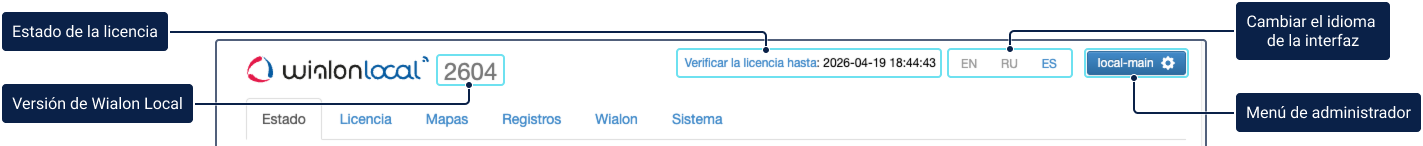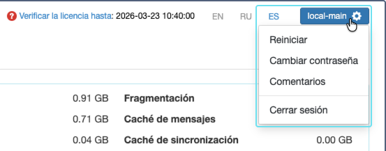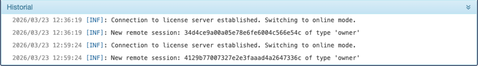 Estado de la licencia: muestra el tiempo restante hasta que expire la licencia o indica que ya ha expirado. Los indicadores de color advierten sobre la expiración próxima o pasada. Para más detalles, consulte Licencia.